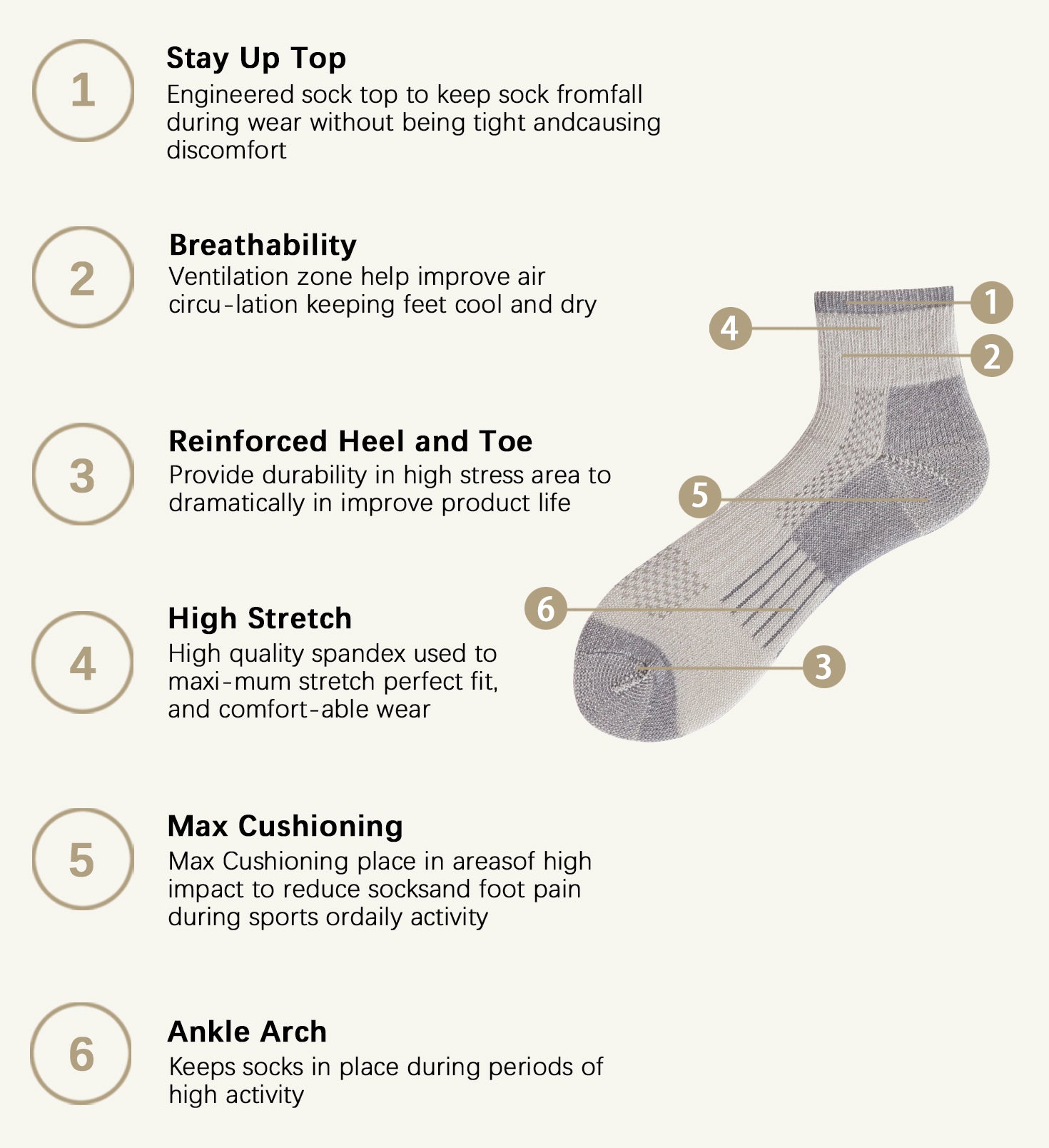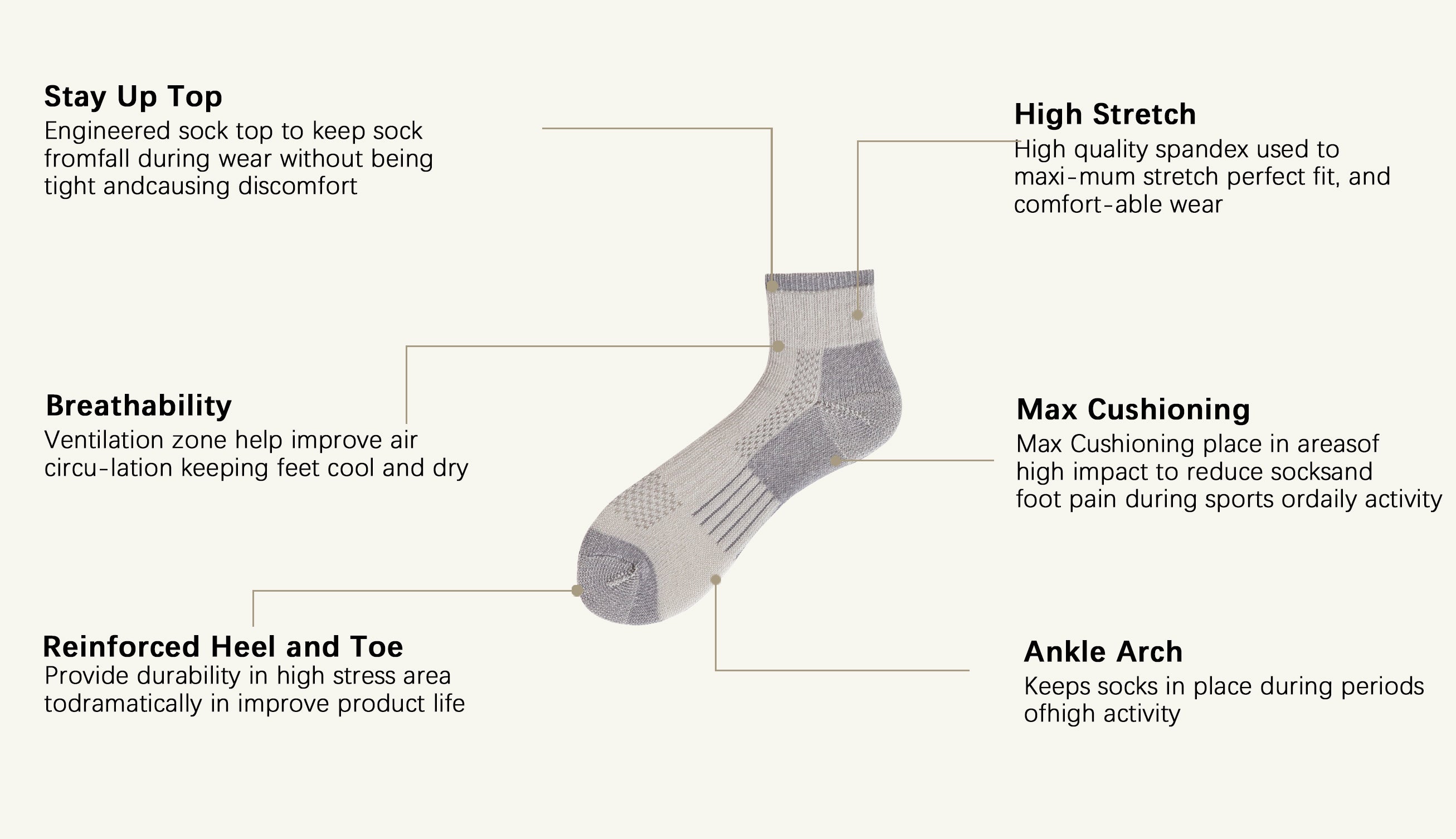 Our everyday wool socks are carefully designed to fit your feet perfectly and provide unparalleled comfort. The unique knitting technology ensures that the socks fit tightly and reduce friction, effectively preventing blisters and skin discomfort that may occur during long-term wear. The anti-wrinkle design allows you to always look your best during a day's activities without worrying about the trouble of socks wrinkling.