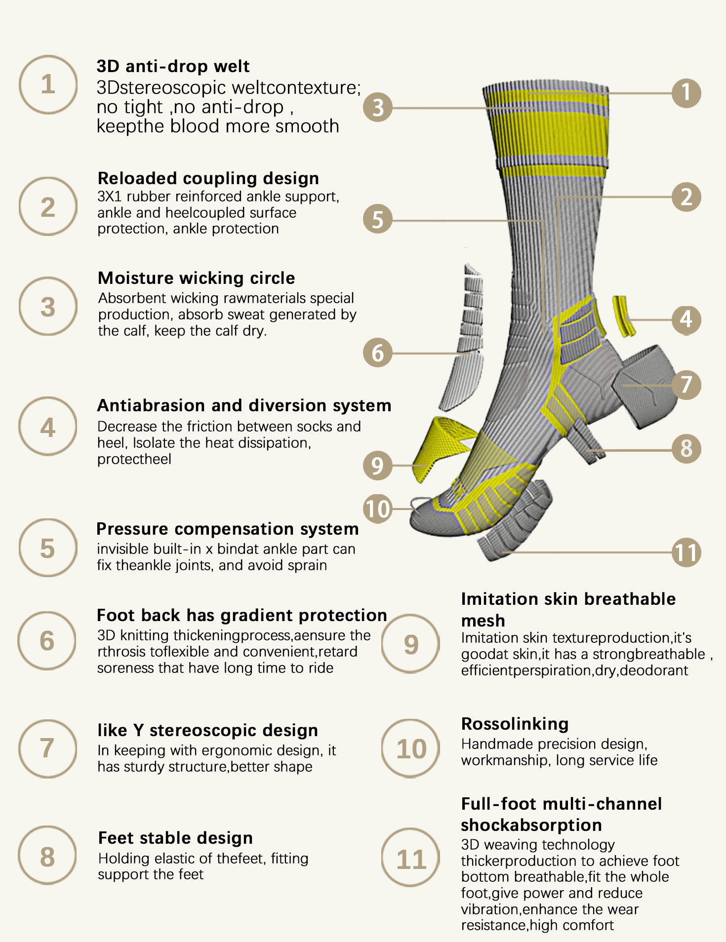 Selected pure natural Merino wool has excellent breathability and moisture absorption and perspiration function, keeping your feet dry and away from sweat. Whether it is a short ride or a long adventure, the wear-resistant properties of wool ensure that the socks are durable and accompany you through every journey. The natural properties of Merino wool are not only gentle and non-irritating to the skin, but also add a natural comfort to your cycling journey.