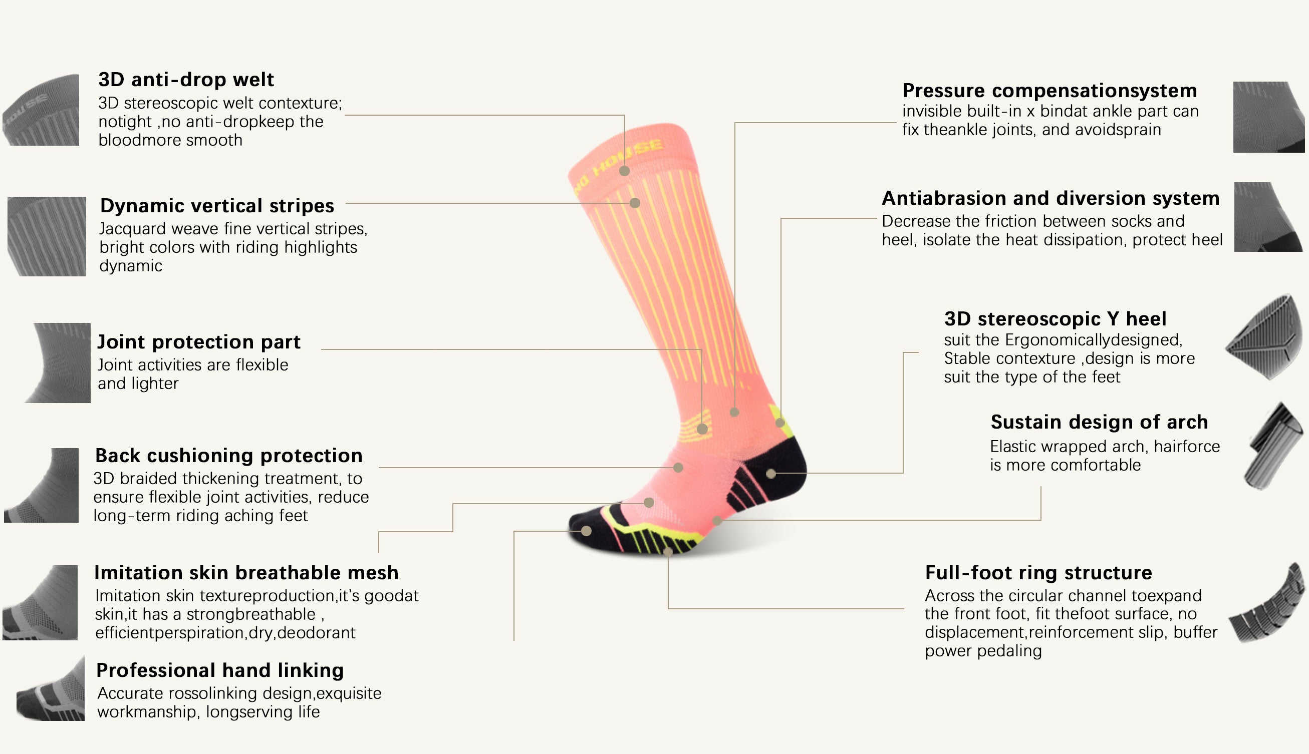 Merino wool cycling socks have excellent thermal properties, providing warmth to your feet even in cold weather. The socks use advanced seamless knitting technology to fit your feet perfectly, eliminating friction, avoiding common skin discomfort and blisters during cycling, so you can feel comfortable even on long rides.