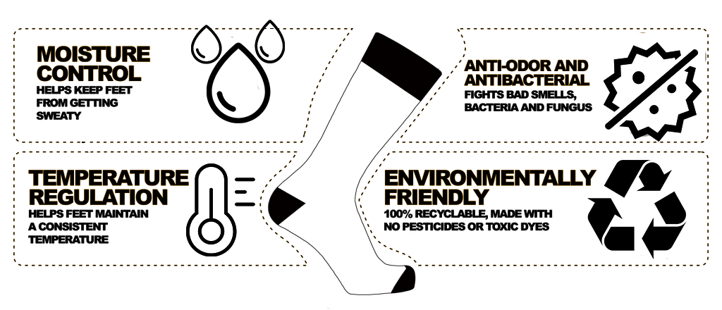 Nos chaussettes sont tissées à partir de notre fibre exclusive 3D Silver Ion, un matériau en polypropylène évacuant l'humidité que nous avons développé en interne avec des ions d'argent infusés directement dans le tissu.