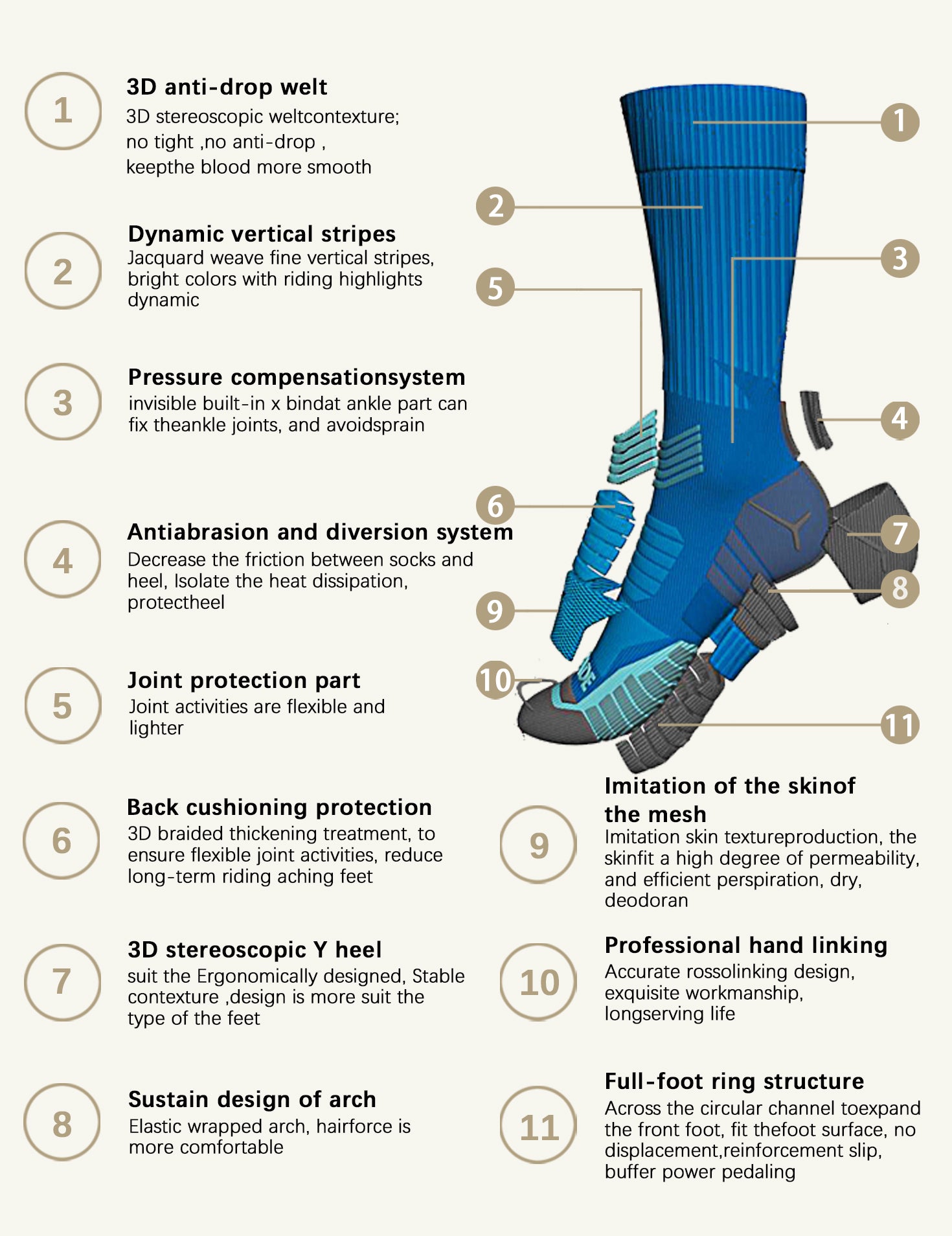 Les chaussettes de cyclisme en laine mérinos ont d'excellentes propriétés thermiques, procurant de la chaleur à vos pieds même par temps froid. Les chaussettes utilisent une technologie de tricotage sans couture avancée pour s'adapter parfaitement à vos pieds, éliminant les frottements, évitant les inconforts cutanés courants et les ampoules pendant le cyclisme, afin que vous puissiez vous sentir à l'aise même lors de longues sorties.
