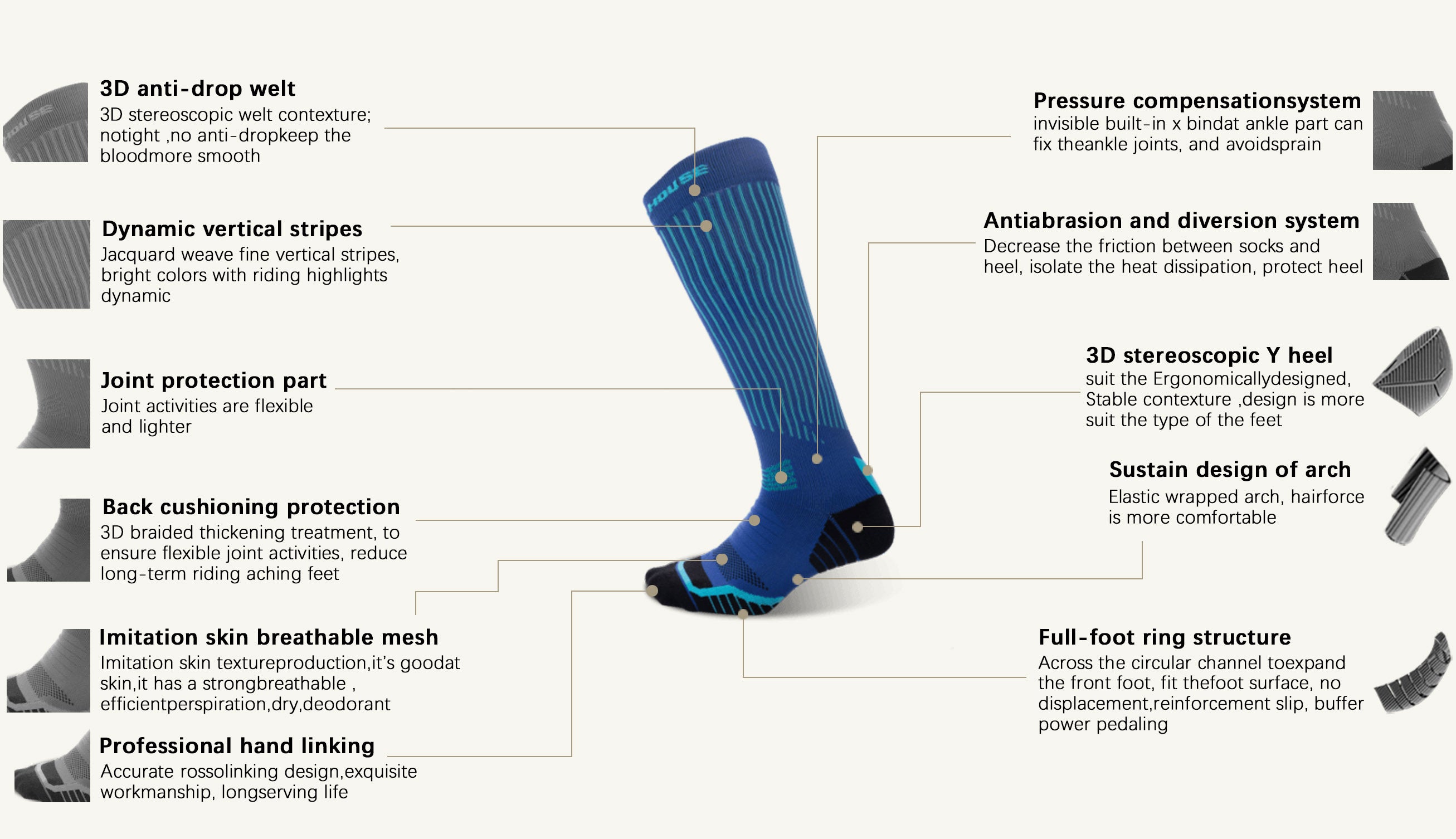 Les chaussettes de cyclisme en laine mérinos sont votre compagnon indispensable et intime lors de chaque sortie à vélo. Que vous rouliez contre le vent ou que vous rouliez tranquillement, nos chaussettes de cyclisme vous offriront un confort ultime et d'excellentes performances, vous permettant de profiter pleinement du plaisir du cyclisme.
