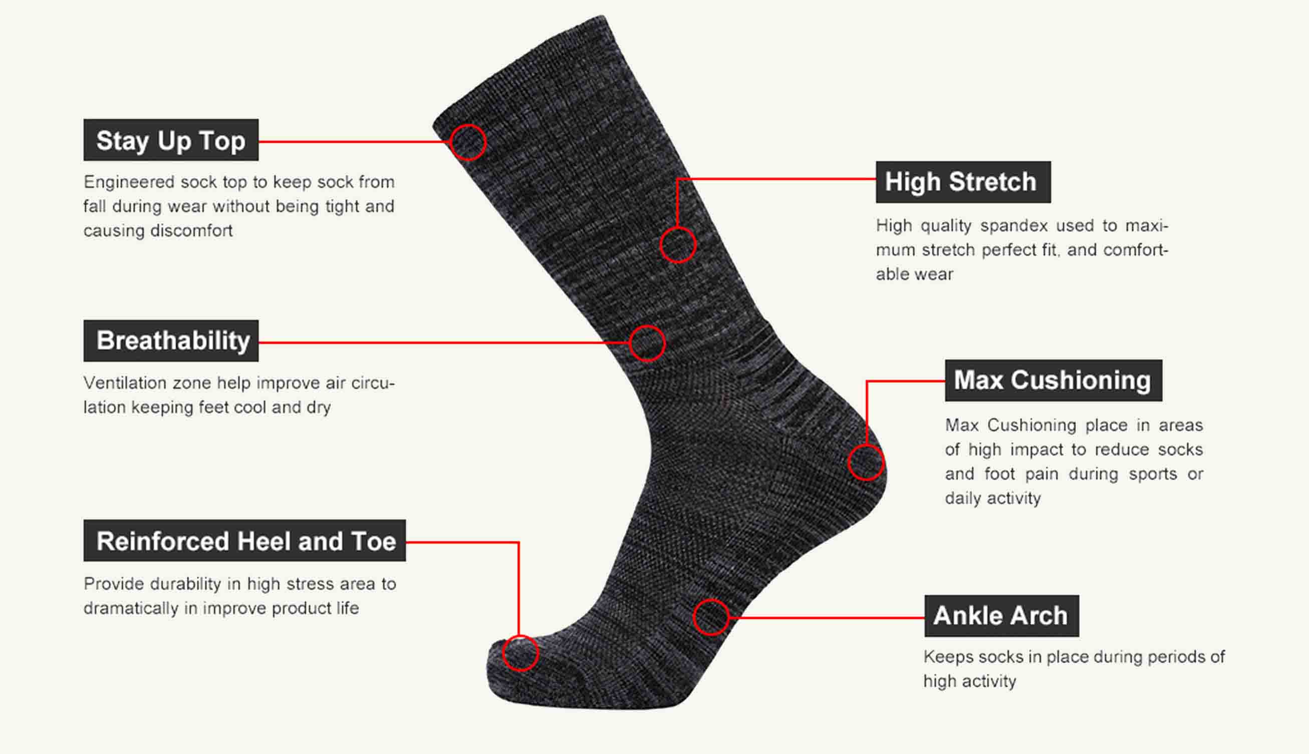 Ajoutez une touche de style à votre garde-robe avec nos chaussettes florales à rayures en laine mérinos. Ces chaussettes pour femmes offrent un amorti complet avec un talon et des orteils renforcés pour un confort et une durabilité maximum. Fabriquées avec des fibres évacuant l'humidité et une maille respirante, elles gardent vos pieds au sec et soutenus, ce qui les rend parfaites pour les activités sportives, le quotidien et le travail.