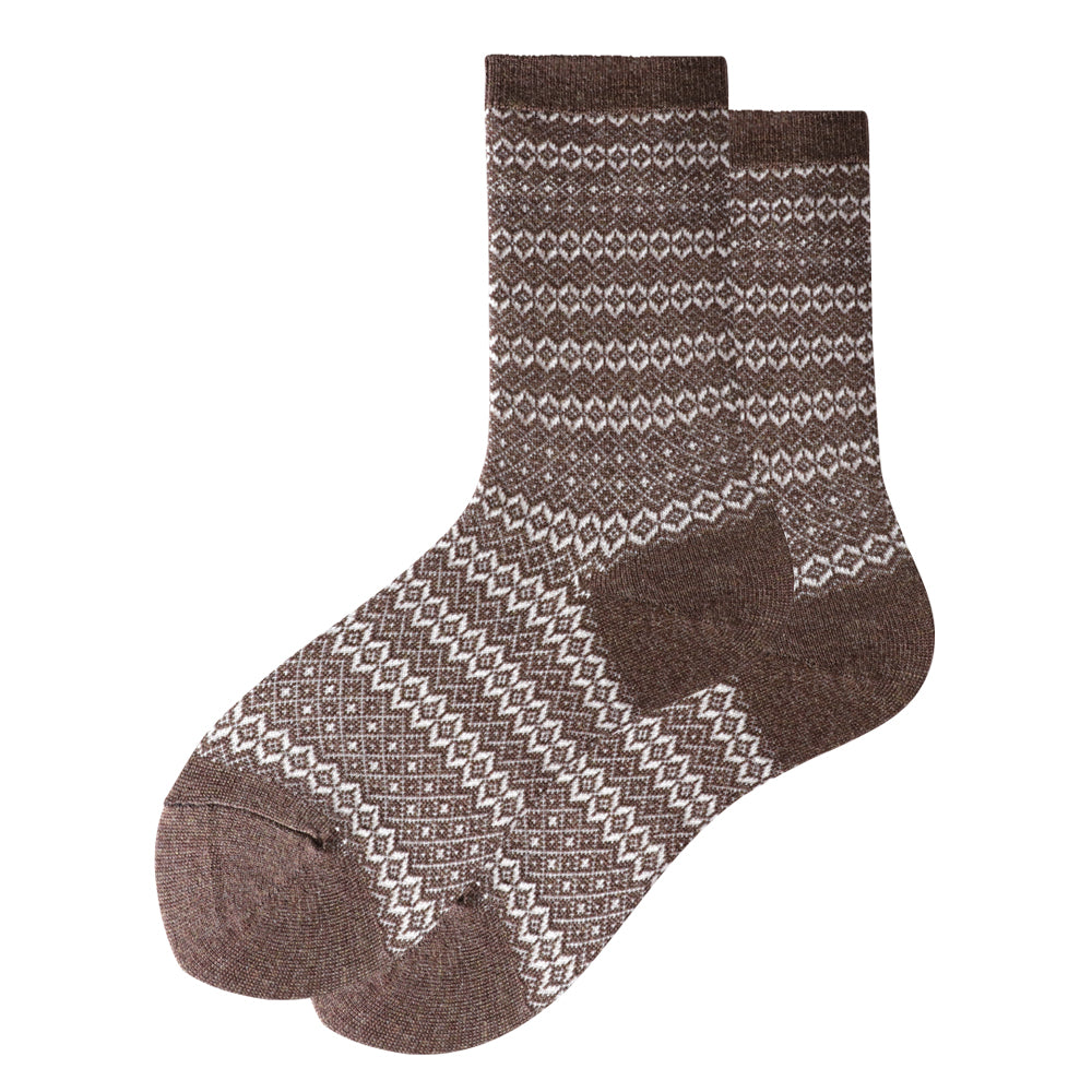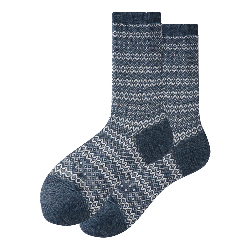 Ajoutez une touche de couleur et de chaleur à votre garde-robe d'hiver avec les chaussettes thermiques colorées MERINO HOUSE. Cet ensemble de 5 paires comprend une gamme vibrante de tons rouges, marron et bleus, offrant à la fois style et confort pour les journées froides. Présentant des motifs modernes comme le chevron, le zigzag et le losange classique, ces chaussettes font une déclaration de mode audacieuse tout en gardant vos pieds bien au chaud.